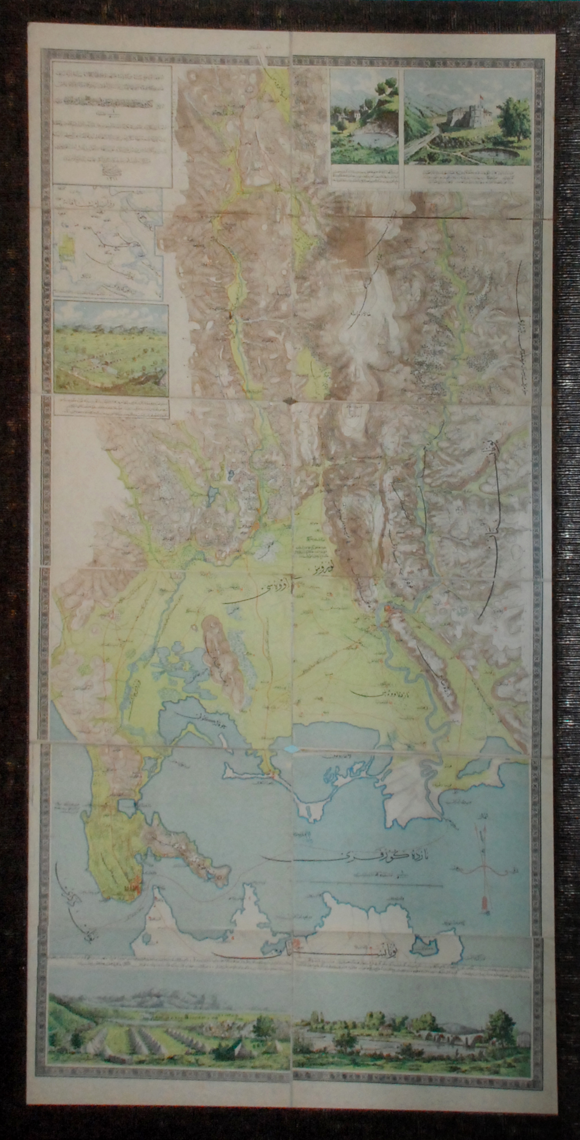Harita Osmanlıca olup, bölgeyle ilgili bilgi ve gravürler içermektedir.